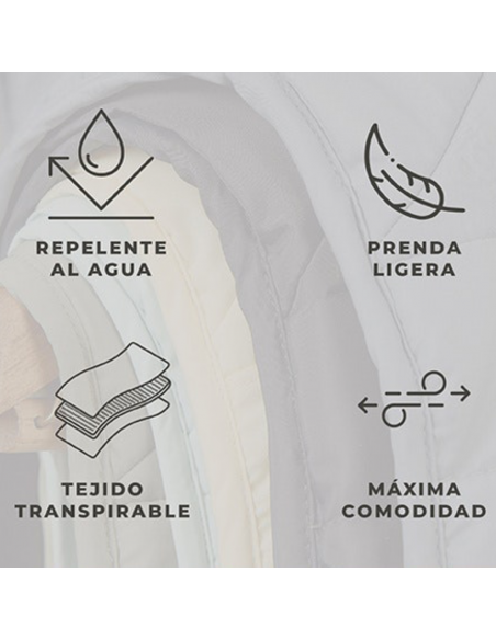 - Chaleco ultraligero, repelente al agua, con acolchado horizontal.