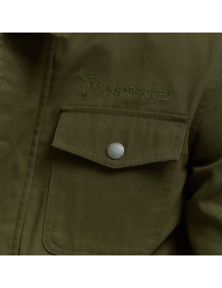 - Cuatro bolsillos frontales de plastrón con solapa abotonada con snaps.
