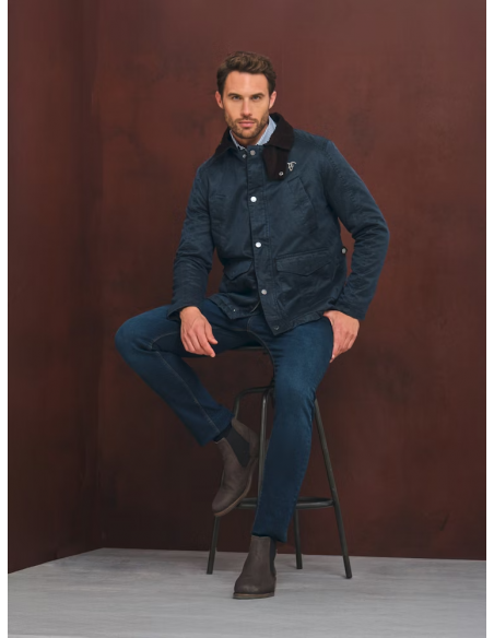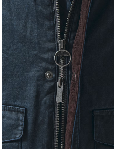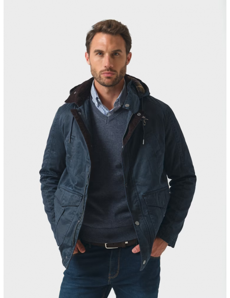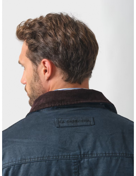 - Parka verde caza con acabado efecto encerado. Corte recto, manga larga, cierre mediante cremallera bidireccional y botonadura frontal de snaps. Cuello camisero contrastado en pana con capucha ajustable y desmontable mediante snaps. La prenda cuenta con 4 bolsillos en la parte delantera, dos laterales a la altura del pecho con cierre de snap oculto y dos frontales en el bajo con cierre de tapeta y snaps. Bordado al contraste con nuestro caballo en el pecho y parche trasero conmemorativo al tono de la prenda. Ceñidores laterales, puños ajustables y aperturas en el bajo para una mayor comodidad. Forro interior de cuadros tartán y tejido acolchado con dos bolsillos interiores con cierre de snaps.