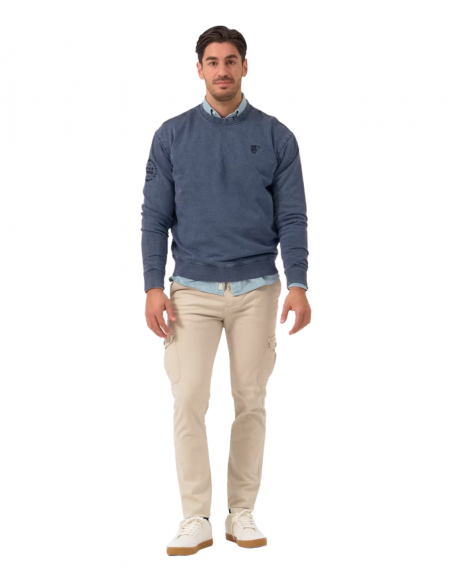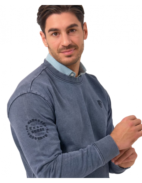 Sudadera con acabado lavado en color azul marino confeccionada en tejido 100% algodón. Corte relajado, cuello redondo, manga larga.