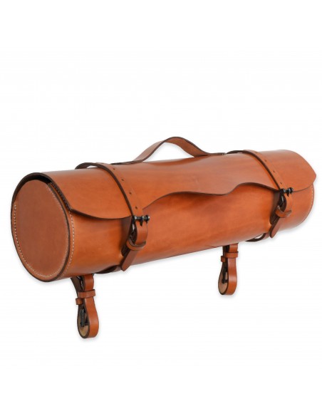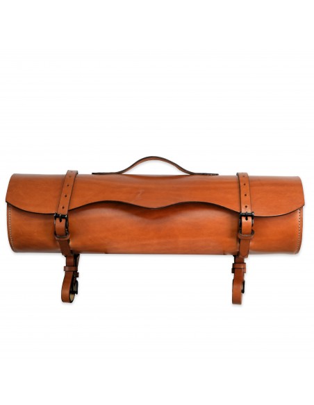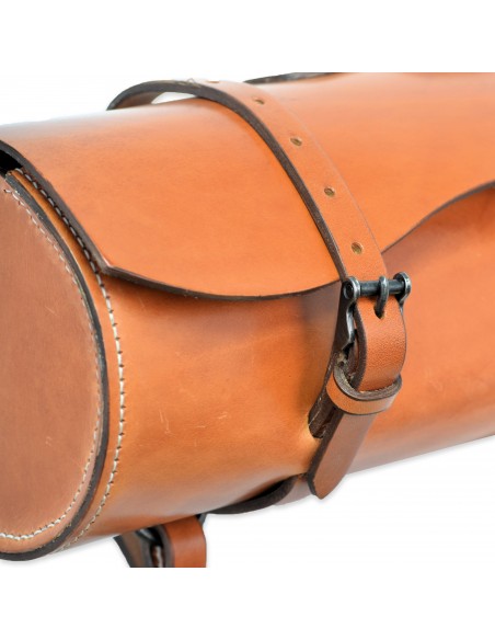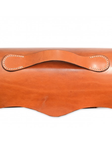 Alforja de perilla para silla vaquera de piel de primera calidad, con pasador para manta estribera. Hecha a mano en nuestro taller.