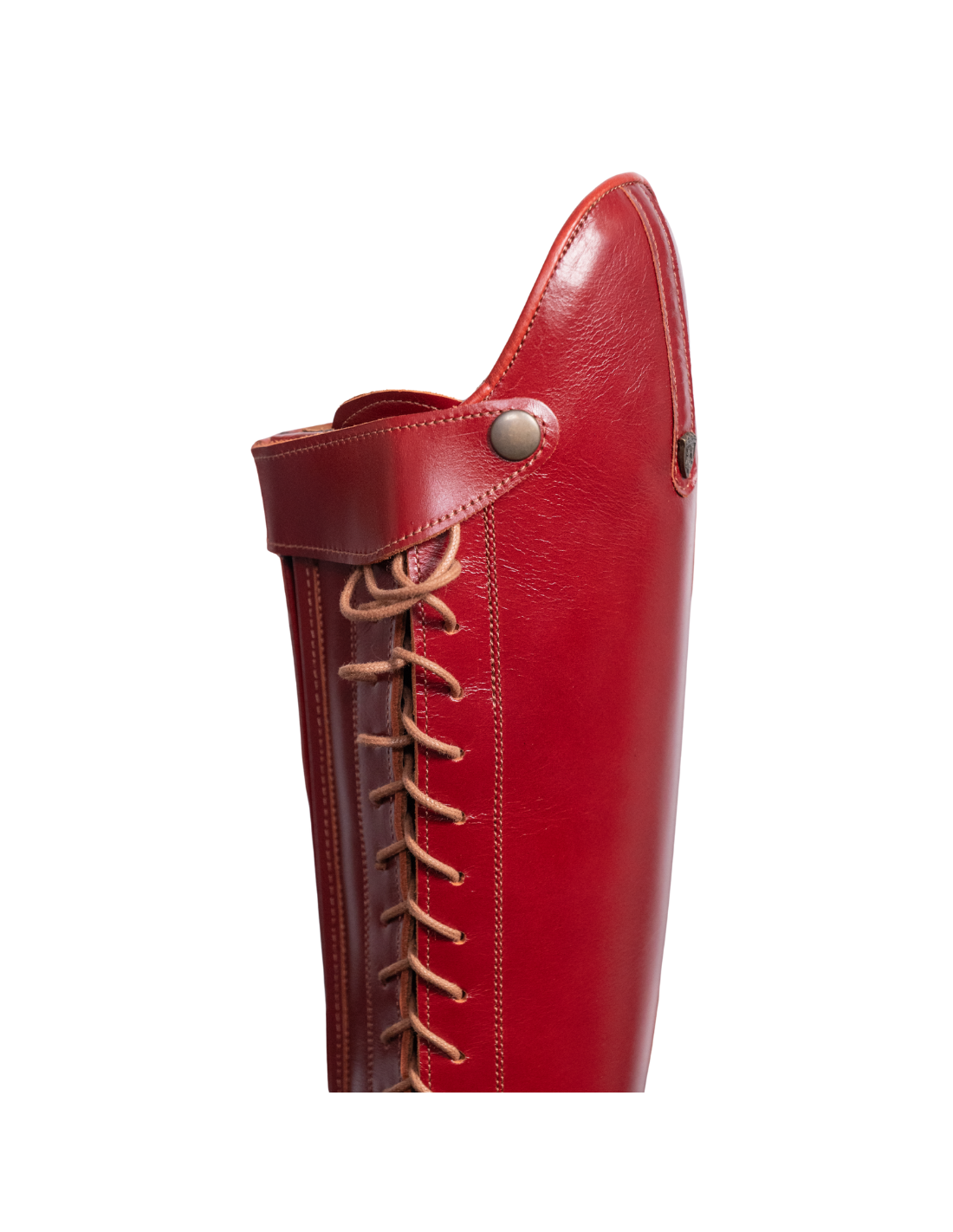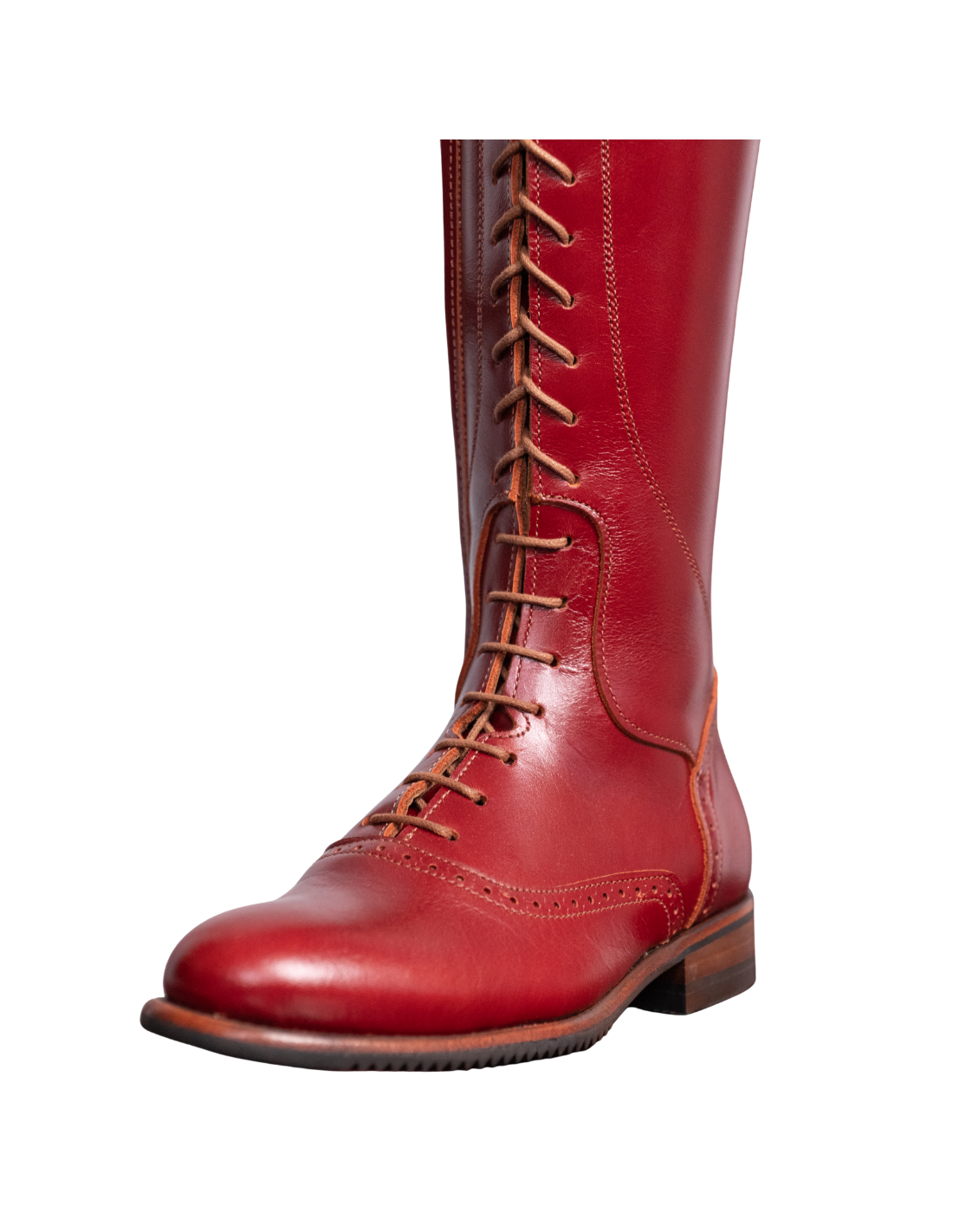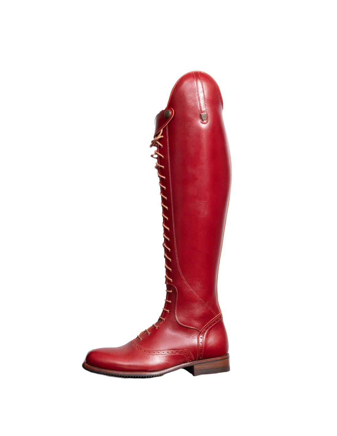 Bota de montar a caballo con cordones en color cereza. Tiene cremallera interior y suela vibram.