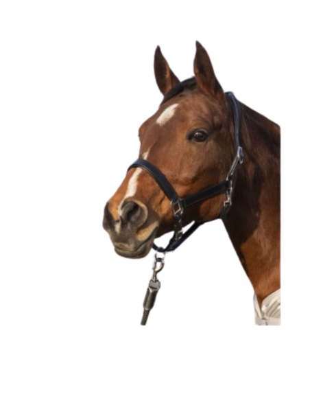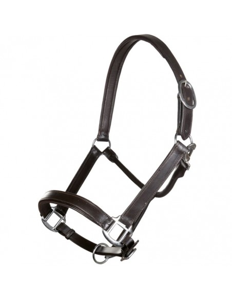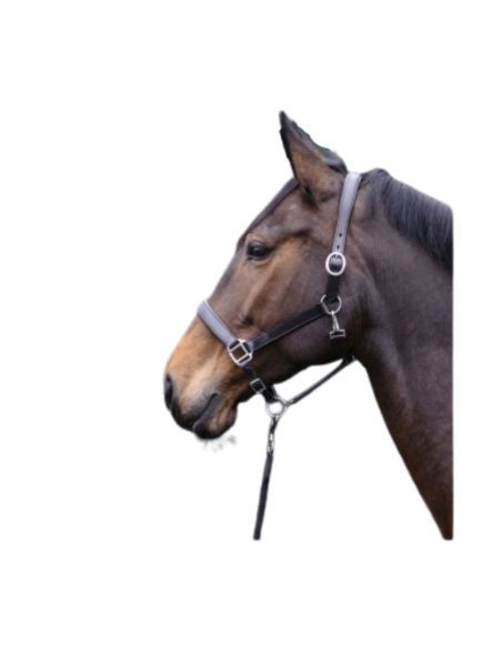 Cabezada de cuero Economic HKM. Correa de nariz y frente con funda muy suave. Hebillas plateadas ajustable a ambos lados y muserola ajustable.