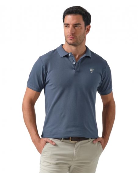 Polo básico en color azul cobalto liso confeccionado en tejido 100% algodón. Corte recto, cuello clásico rematado al interior con media luna, cierre mediante tapeta bordada con nuestra marca, manga corta terminada en puño. Bajo con aberturas laterales. Logo con nuestro caballo bordado en el pecho.