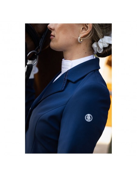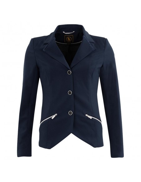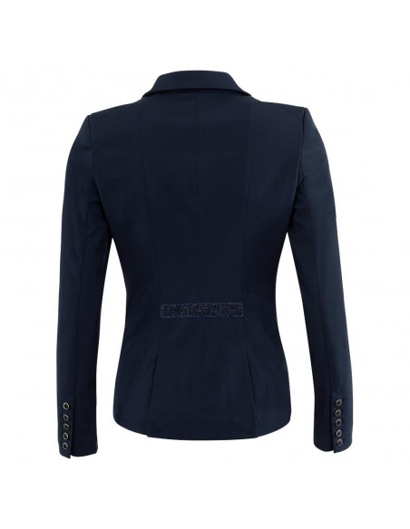 La chaqueta de competición Nottingham para mujer tiene un aspecto clásico y regula la humedad y se seca rápidamente para garantizar una comodidad agradable. La chaqueta tiene dos prácticos bolsillos con cremallera en la parte delantera y está rematada con una cinta brillante en el cuello y la espalda. La chaqueta tiene un cierre de botones (tres botones) en la parte delantera y una hilera de cinco botones pequeños en la parte inferior de las mangas.