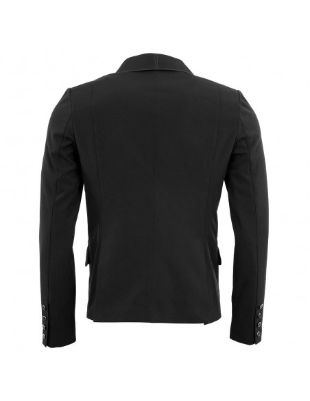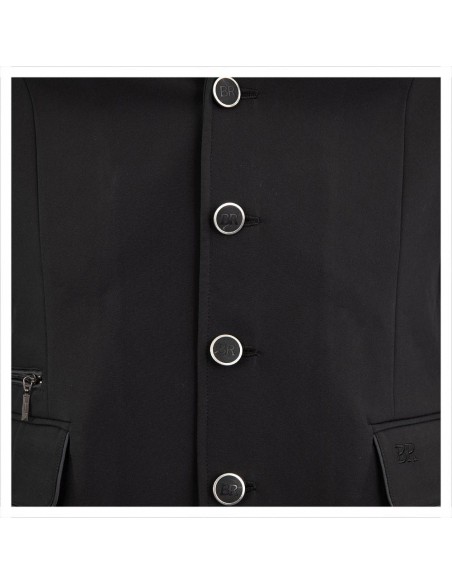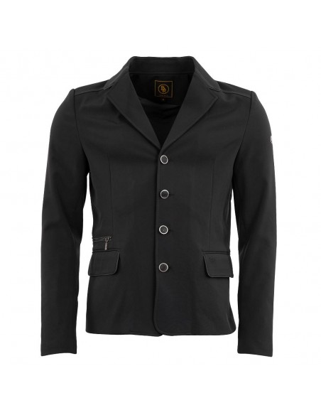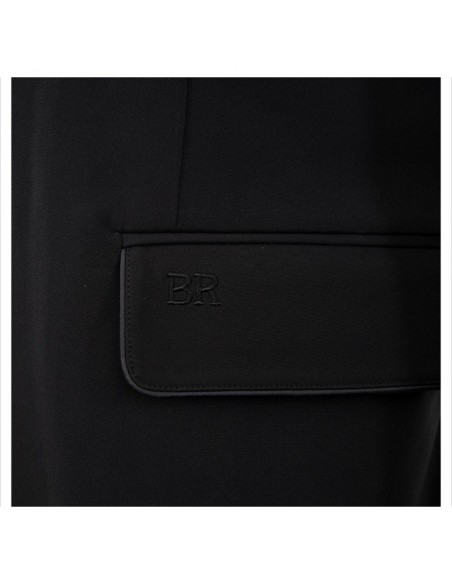 En la parte delantera, la chaqueta tiene tres botones BR hechos de plástico. Los puños presentan los mismos botones en un formato más pequeño. Esta chaqueta de torneo tiene dos bolsillos con solapa, así como un bolsillo con cremallera en la parte delantera y dos aberturas para montar en la parte trasera. Hay un logotipo BR bordado en uno de los dos bolsillos con solapa. El corte y las costuras en contraste completan la chaqueta de forma elegante.