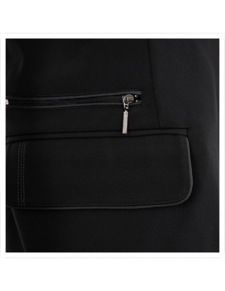 Esta chaqueta de competición para hombre luce elegante gracias a sus detalles sutiles y está hecha de un material cómodo que ofrece muchos beneficios. Está hecha de softshell con un cómodo forro de malla. El forro de malla proporciona una buena ventilación, absorbe la humedad y se seca rápidamente. La chaqueta tiene un pequeño ojal de ventilación debajo de la axila en ambos lados. Softshell es repelente al agua, elástico y ligero.