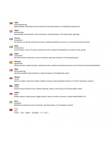 Golosina para caballos sabor manzana compuesta de ingredientes naturales. Bolsa de 750 g.