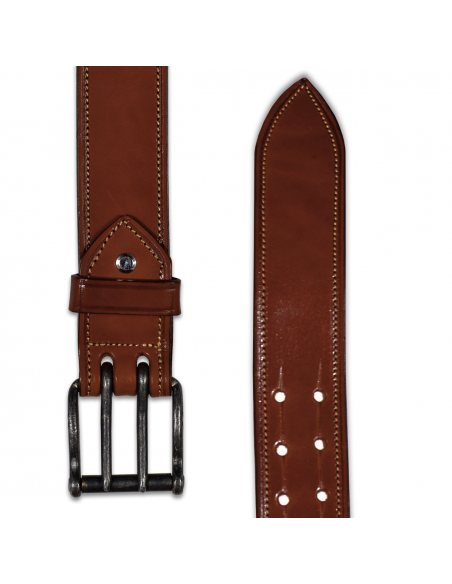 Cinturón de cuero 'Los Nietos' hecho a mano costuras| Doble Pincho