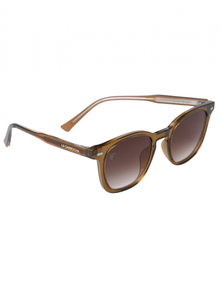 Gafas de sol de color negro o marrón claro (miel) con montura cuadrada de carbono. Patillas personalizadas con nuestra marca y cierre de bisagra. Lentes oscuras polarizadas con protección UV 400 Categoría 3. Incluye funda de microfibra, paño de limpieza y estuche grabado con el logo de la marca.