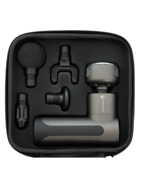 - Con solo 620 g de peso y un nivel sonoro de como máximo 45 db, es uno de los aparatos de masaje más ligeros y silenciosos.