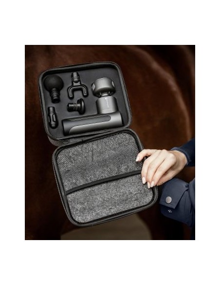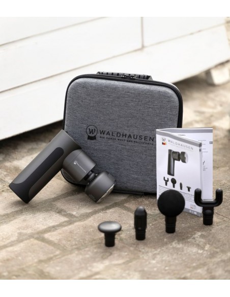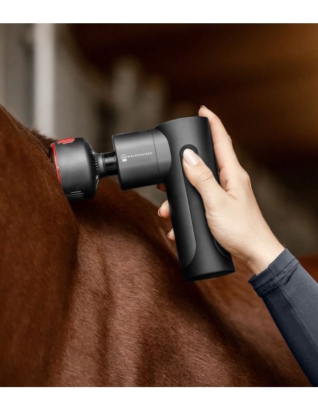 Aparato de masaje W-Health & Care Pro, Hot & Cold de Waldhausen no solo es un instrumento imprescindible en la cuadra, sino también es el complemento ideal durante el viaje. Los cinco accesorios diferentes permiten aplicaciones puntuales y también en superficie con las que, regulando la velocidad, se pueden tratar individualmente las distintas zonas musculares del caballo.