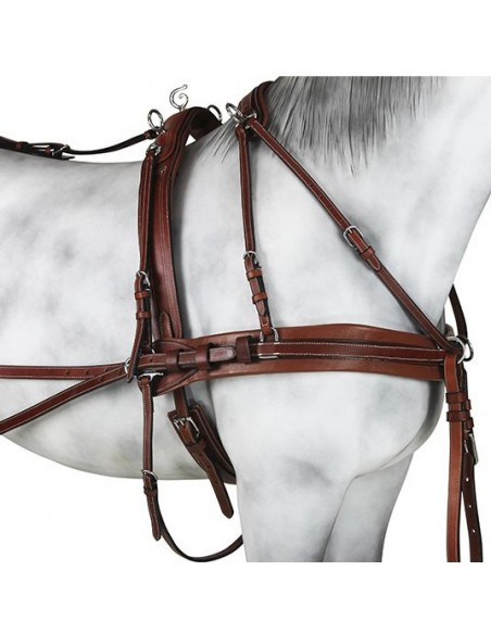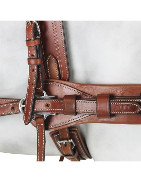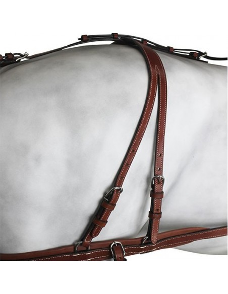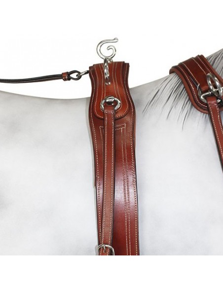 • Enganche de paseo con un diseño elegante, fabricado con cueros de primera calidad y hebillajes de Acero Inoxidable.