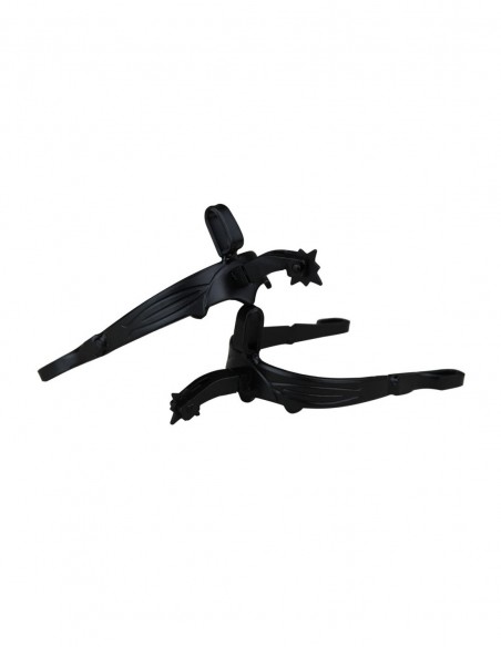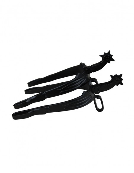 - Espuela vaquera fabricada en hierro pavonado con un gallo normal de 4cm y una ruleta giratoria vaquera.