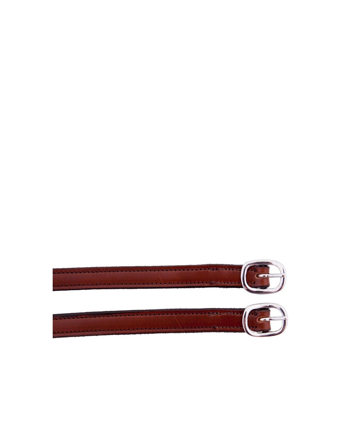 Correas de espuelas de piel forrada con hebillas de acero inoxidable. Color marrón.