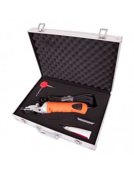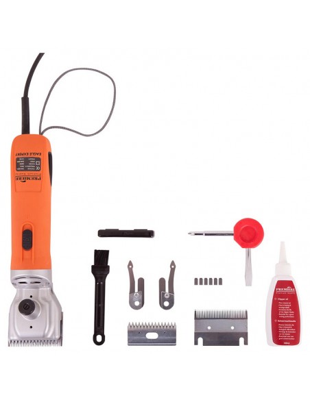 Esta esquiladora profesional para cortes intensivos cuenta con un potente motor de 200 vatios y es apta tanto para caballos como para perros. Su diseño ergonómico la hace muy práctica. Además, cuenta con un cable de 6 metros que proporciona mayor facilidad de uso y libertad. Además, la Eagle Expert es extremadamente silenciosa (≤ 85 dB) y tiene bajas vibraciones. El ancho de la cuchilla es de 80 mm y la longitud de corte es de 3 mm. También se incluye una cuchilla de repuesto con una longitud de corte de 1 mm. Ambas cuchillas se venden por separado (artículos 802934 y 802935). La Eagle Expert se entrega en un lujoso estuche de aluminio. El kit incluye aceite, cepillo de limpieza, destornillador, resortes laminados, escobillas de carbón y manual.