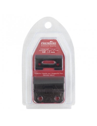 Esta cuchilla es compatible con la cortadora Premiere Clipper Merlin Duo. Esta cortadora combina una cuchilla superior de cerámica con una cuchilla inferior pulvimetalúrgica con ventilación para evitar el sobrecalentamiento. Esta combinación hace que la cuchilla sea extremadamente eficiente y prolonga su vida útil.