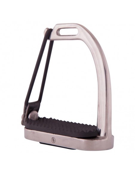 Pareja de estribos de seguridad BR Fillis con taco de acero inoxidable con peldaños negros.