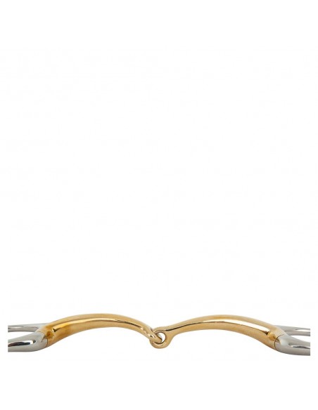 Filete de una sola pieza de alta calidad está hecho de cuprigan macizo con anillos de acero inoxidable. El proceso de oxidación del material le da un olor y un sabor agradables. El diseño anatómico del bocado sigue la forma de la boca del caballo, lo que permite una distribución suave y uniforme de la presión. El diseño, combinado con las propiedades únicas del cuprigan, fomenta el proceso de masticación y la producción de saliva, lo que permite una conexión agradable con la boca sensible del caballo. El bocado aplica una presión normal sobre la boca.