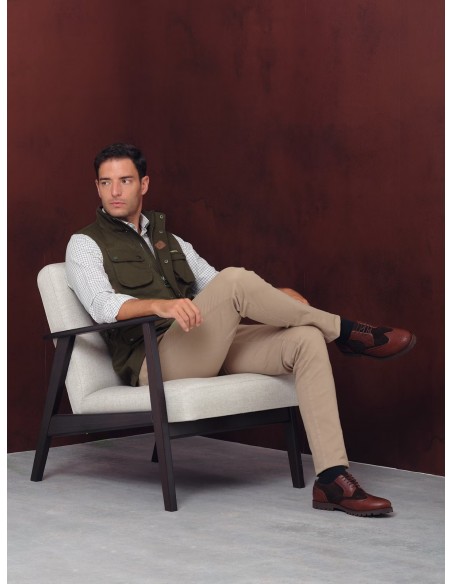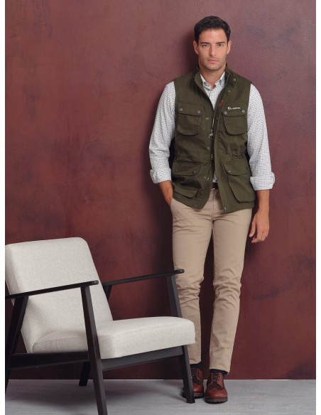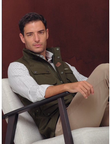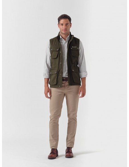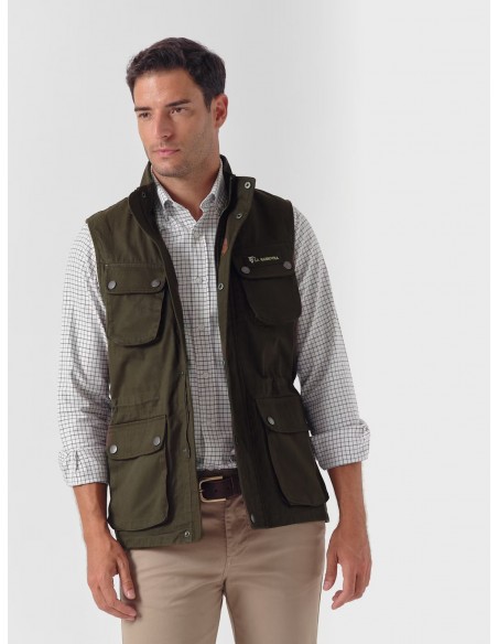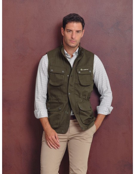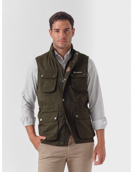 • Chaleco fabricado en tejido de 100% algodón en color verde caza.