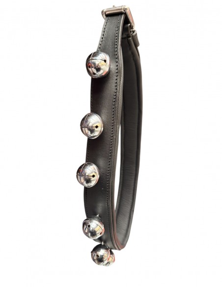 Collar de cascabeles para enganches de cuero disponible en varios colores.