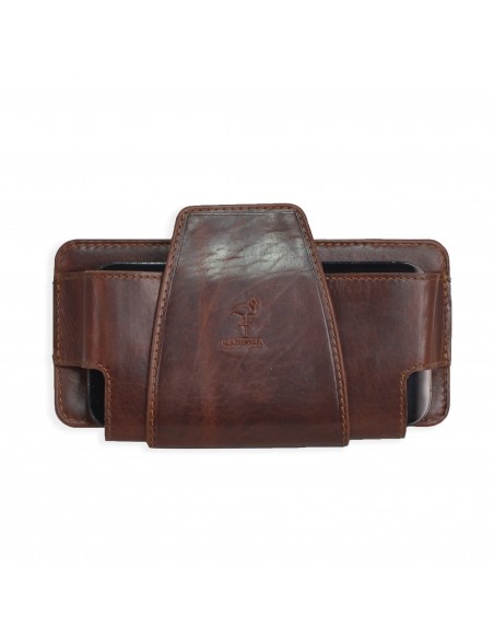 Funda de cuero para móviles con pasador para correa. Con cierre de velcro y pasador para correa.