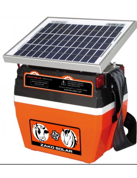 Pastor eléctrico solar Zako recargable. Se suministra con un cargador, por si fuera necesario por falta prolongada de sol.