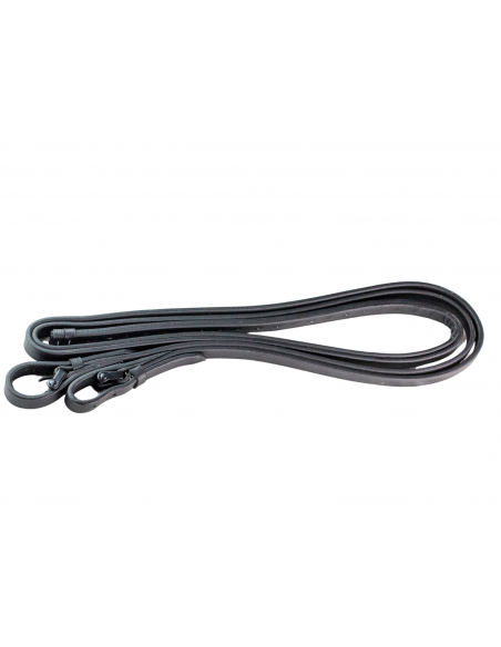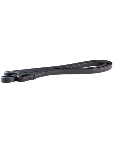 Riendas vaqueras de cuero resistentes y flexibles, con diseño cerrado y hebillas para una sujeción firme a la embocadura. Acabado liso, ideales para doma y trabajo diario con estilo tradicional.