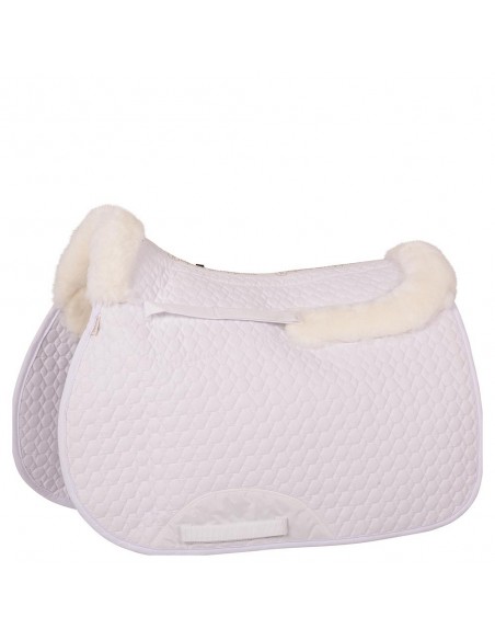- Mantilla de algodón con piel de oveja medicinal debajo de la zona del asiento (es decir, medio forrada), excluyendo el canal vertebral.
