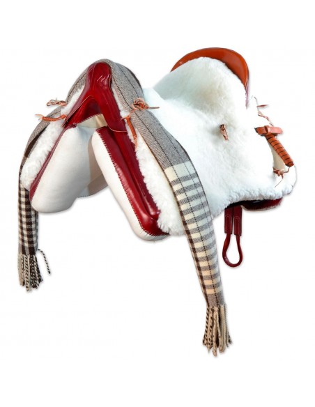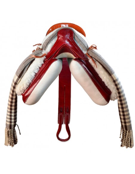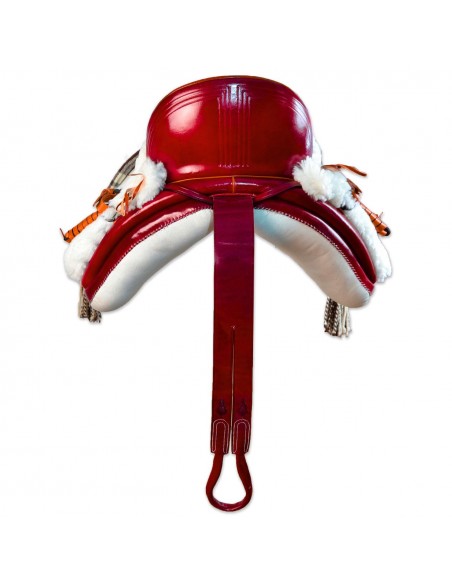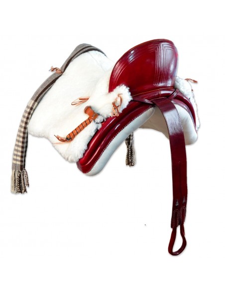 Portacapote de piel 'Los Nietos'. Hebillas y pasadores de acero inoxidable. Forma cilíndrica. Color cereza.