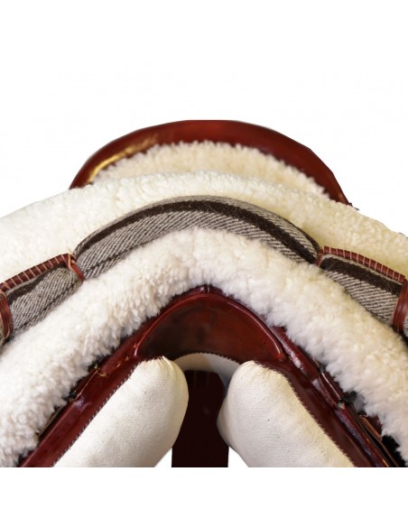 Estribo vaquero de acero fragua 'Los Nietos', modelo 'Premium'. Puente abatible o fijo. Forro de ternera.