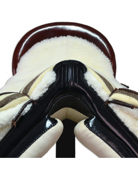 Montura vaquera artesanal con armazón de fibra de poliéster súper resistente con barras ergonómicas adaptables al dorso del caballo patentadas por Guarnicionería Los Nietos. Paso de piernas escotado para un contacto óptimo y mejorado entre el jinete y su caballo. Esta montura se realiza de forma personalizada por lo que si tiene alguna consulta llámenos al 626905889, le atenderemos personalmente y resolveremos cualquier duda.