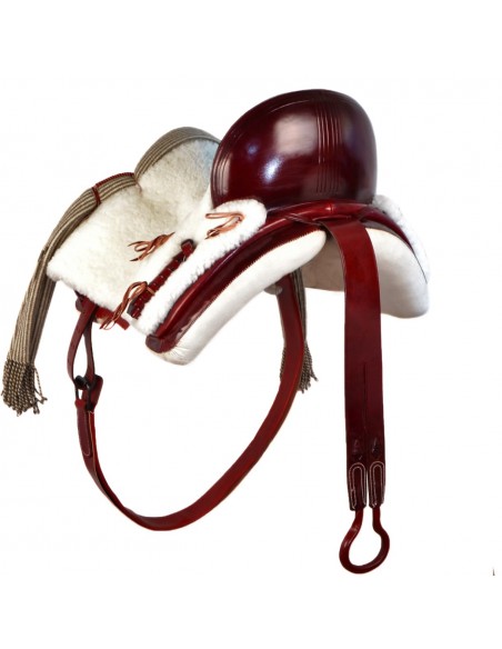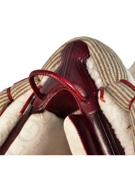 • Tamaño: Variable según encargo. Son sillas absolutamente personalizadas, se adaptarán como un guante a su caballo y su anatomía. Puede encargarla en pulgadas o con medidas concretas de perilla a concha. Consúltenos