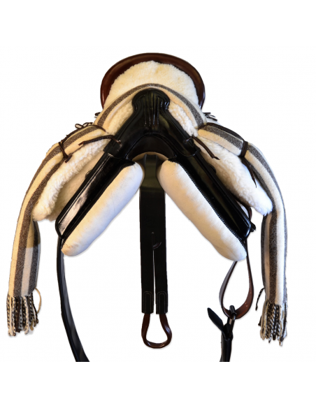 • El precio incluye: Silla vaquera, aciones vaqueras de cuero, cincha vaquera y baticola elástica. De regalo la montura incluye funda de lona, manta estribera y nuestro abrillantador de monturas ‘Los Nietos’.