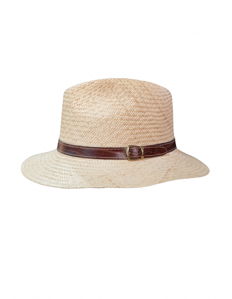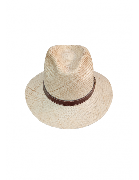 Sombrero de paja natural con correa decorativa a la izquierda. MOD 821085.