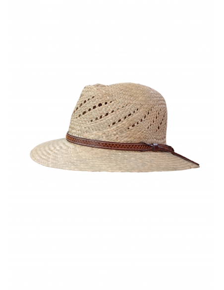 Sombrero de paja natural con lazo de piel decorativo a la izquierda. MOD 3301123-C.