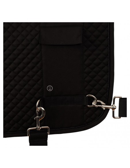 La mantilla de entrenamiento BR Alaska tiene un diseño único con correas elásticas que ayudan al caballo a moverse correctamente. Además, también se entrenan los músculos de la espalda y el abdomen. Las correas elásticas son extraíbles y ajustables para un ajuste perfecto. Puedes fijar las correas fácilmente gracias a los mosquetones. En la mantilla hay un bolsillo para el teléfono para que puedas realizar un seguimiento de los datos del entrenamiento.