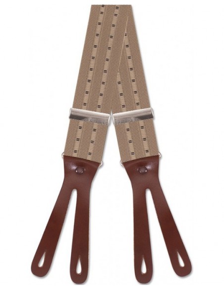 Tirante fantasía en varios colores con decoración moteada. Fabricado en poliéster y látex con terminales en piel.