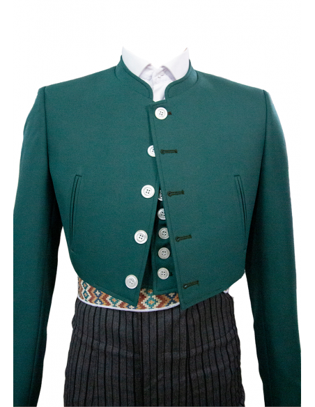 Conjunto campero de chaqueta y chalequillo para traje de corto confeccionado en sarga.
