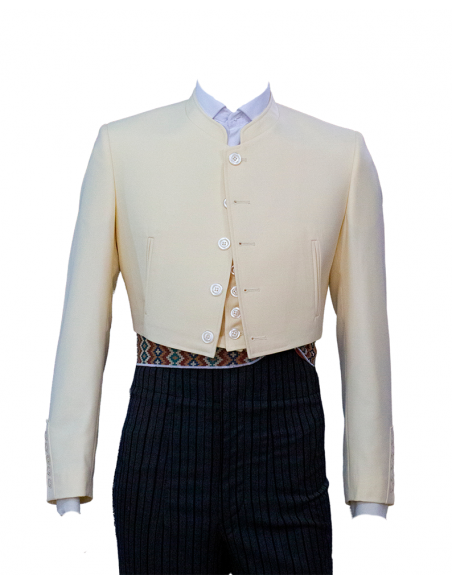 Conjunto campero de chaqueta y chalequillo para traje de corto confeccionado en saturno.
