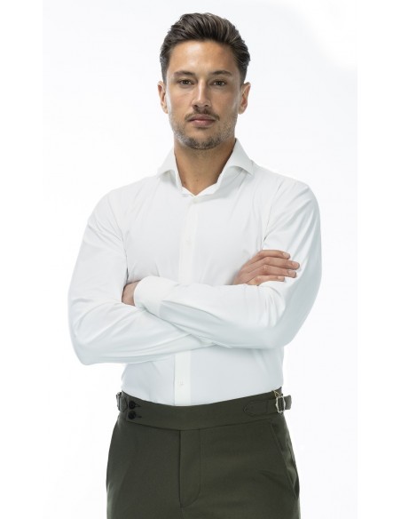Camisa blanca para traje de corto o campero con cuello italiano.