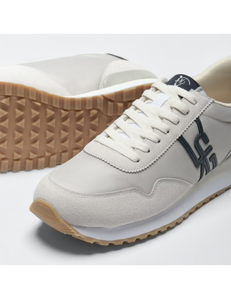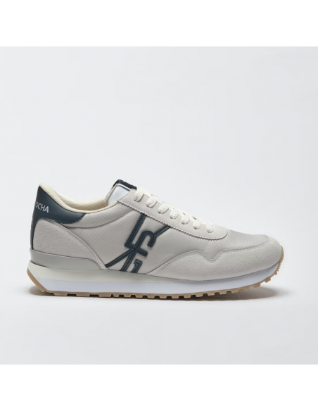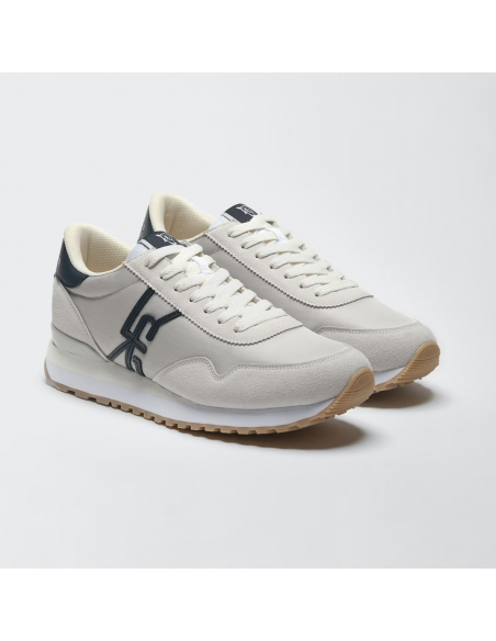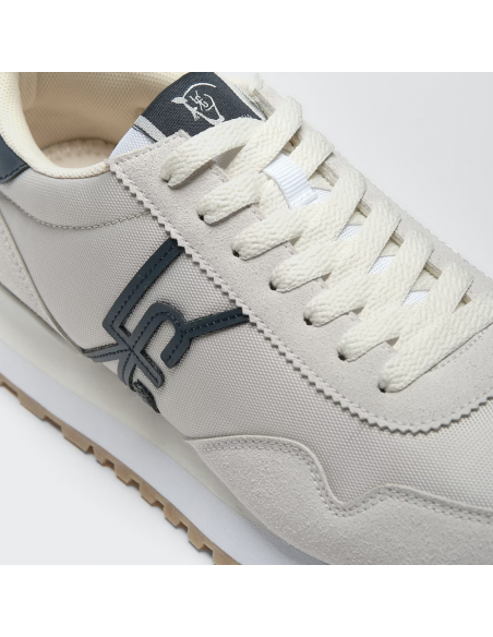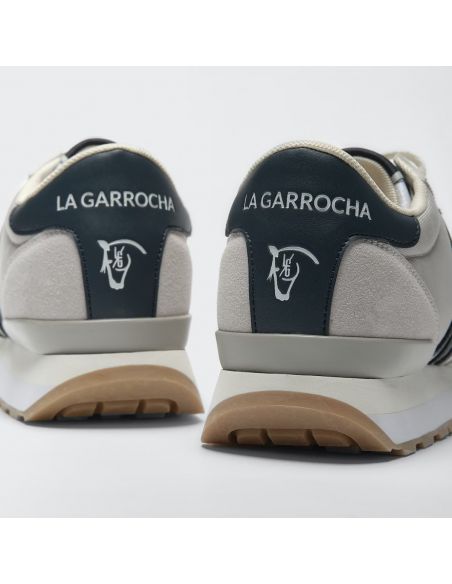 - Lengüeta textil con etiqueta tejida conmemorativa y talonera de piel sintética personalizada con nuestro logo a contraste.