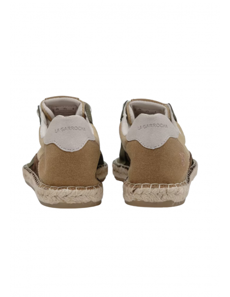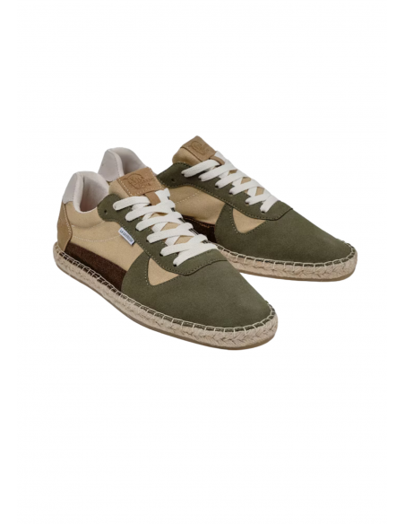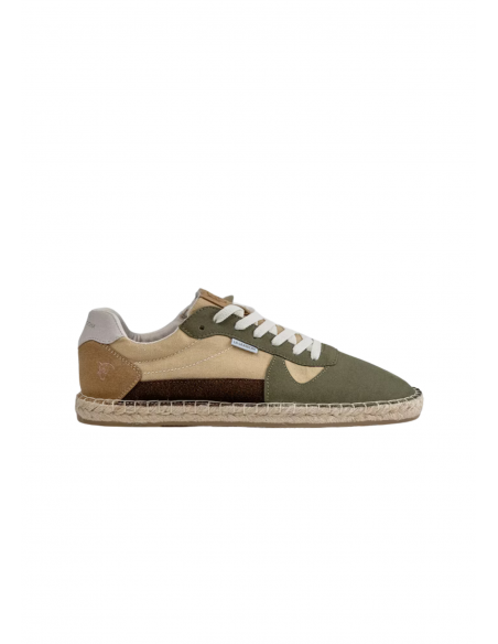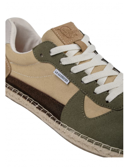 - Alpargata con cordones confeccionada en tejido de lona y ante sintético con detalles en color caza.